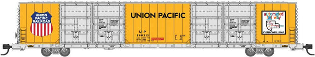 Bluford Shops N-Scale Pullman-Standard 86' Quad Door Auto Parts Boxcar - Ready to Run -- Union Pacific #980219 (Armour Yellow, silver, black, Automated Railway Logo