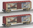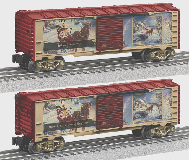 Lionel 2528410 Steel Boxcar - 3-Rail - Ready to Run - Thomas Kinkade Studios -- Disney Mickey & Minnie Evening Sleigh Ride (red, cream)