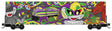 Modified 60' Excess-Height Double-Plug-Door Boxcar - Ready-to-Run -- Micro-Mouse Mardi Gras (purple, gray, yellow, green)