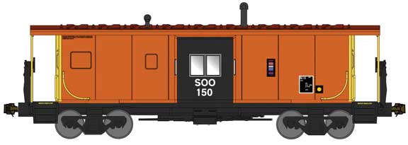 Bluford Shops International Car Bay Window Caboose Phase 4 - Ready to Run -- Soo Line 150 (Ex-MILW, orange, black, yellow) - 188-44270