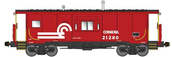 Bluford Shops International Car Half-Bay Window Caboose - Ready to Run -- Conrail #21280 (Shared Assets; Boxcar Red, white) - 188-40150