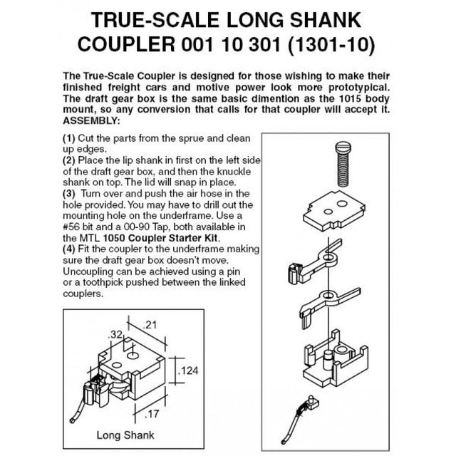 Micro-Trains N Scale True-Scale Coupler -- Long Shank pkg(20) (black)