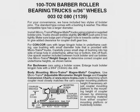 Micro-Trains N Scale Barber Roller Bearing Trucks w/36" Wheels -- 1 Pair