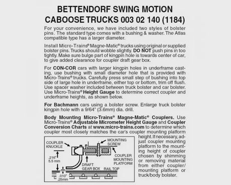 Micro-Trains N Scale Caboose Trucks - 1 Pair -- Bettendorf Swing-Motion Type