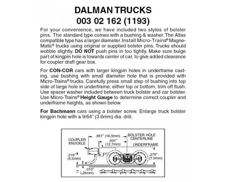 Micro-Trains N Scale Freight Car Trucks 1 Pair -- Dalman 2-Level (Talgo Style w/Knuckle Coupler)