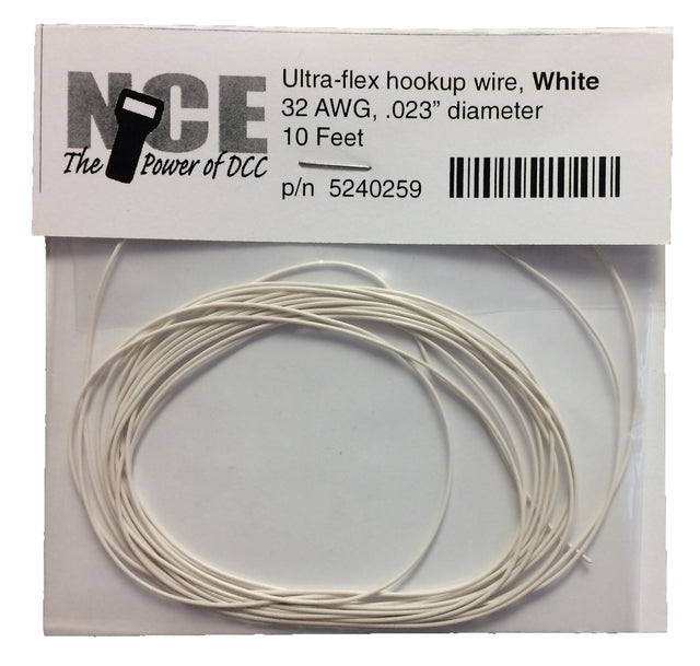 NCE Ultraflex Hook-Up 32AWG .023 Diameter Wire -- White 10' 3.05m - NCE 5240259