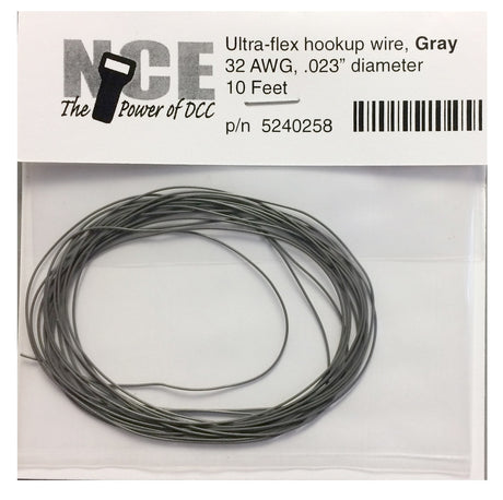 NCE Ultraflex Hook-Up 32AWG .023 Diameter Wire -- Gray 10' 3.05m - NCE 5240258