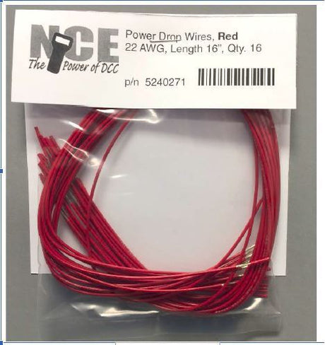 NCE Power Drop 22AWG Wire Feeders -- Red 16" 40.6cm pkg(16) - NCE 5240270