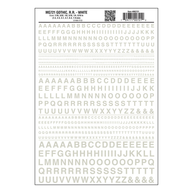 Woodland Scenics Dry Transfer Alphabet & Numbers - Railroad Gothic -- White - WOOMG721