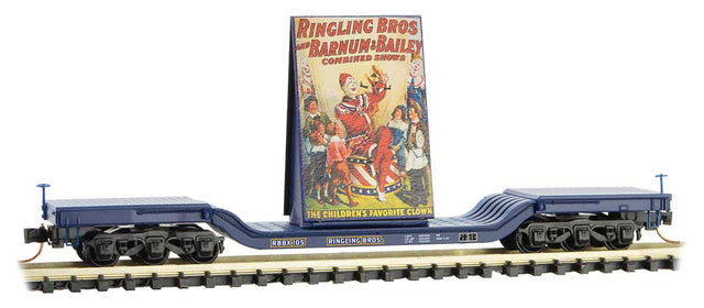 Micro-Trains Heavyweight 6-Axle Depressed-Center Flatcar with Billboard Load - Ready to Run -- Ringling Bros.(R) Clown Billboard Series Car RBBX 105 - 489-10900162