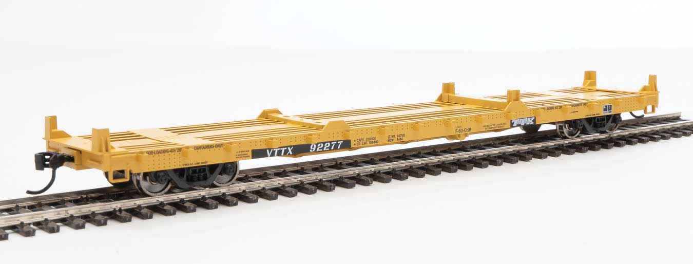 Walthers Mainline 60' Pullman-Standard Flatcar - Ready to Run -- TTX VTTX #92277 (20' and 40' container loading, yellow, black, white) - 910-5351