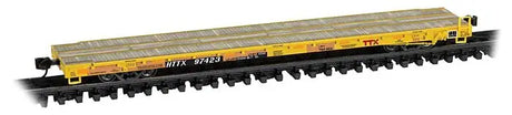 Thrall 60' Flatcar - Ready to Run -- TTX HTTX #97423 (Class TSH60A, yellow, black, red logo)