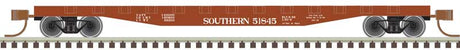 Atlas N 50' Steel Flatcar with Stakes - Ready to Run -- Southern Railway 51852 (Boxcar Red, white)