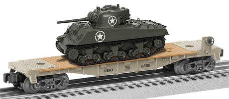 Lionel O Flatcar with Tank Load- 3-Rail - Ready to Run -- U.S. Army (gray, green tank)