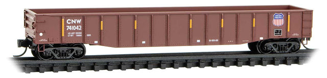 Micro-Trains N 50' Steel 15-Panel Fixed-End Fishbelly-Side Gondola - Ready to Run -- Union Pacific CNW #741042 (Boxcar Red, Small Logo, yellow conspicuity marks)