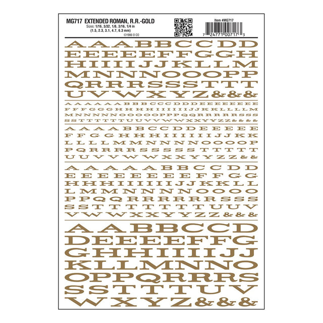 Woodland Scenics Dry Transfer Alphabet & Numbers - Extended Railroad Roman -- Gold - WOOMG717