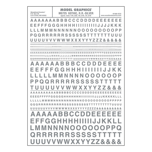 Woodland Scenics Dry Transfer Alphabet & Numbers - Railroad Gothic -- Silver - WOOMG725