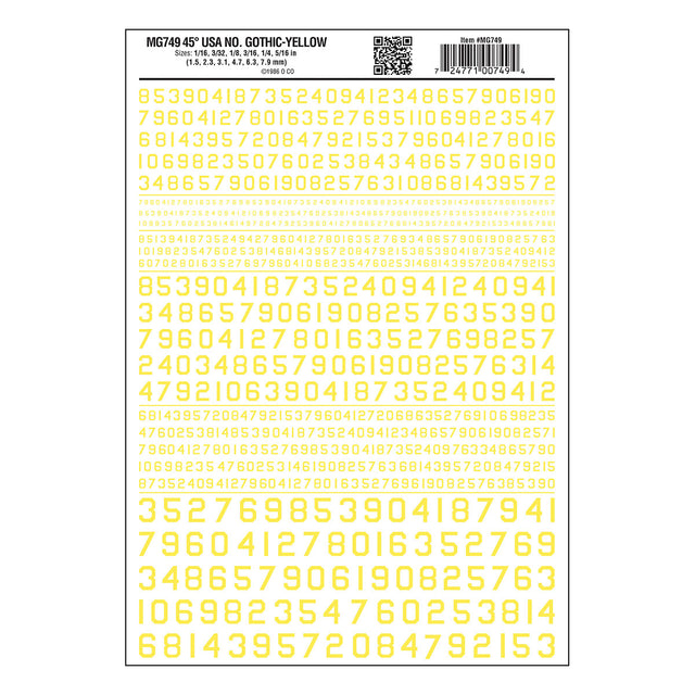 Woodland Scenics Dry Transfer Numbers Only - 45 Degree USA Gothic (Military Style) -- Yellow - WOOMG749