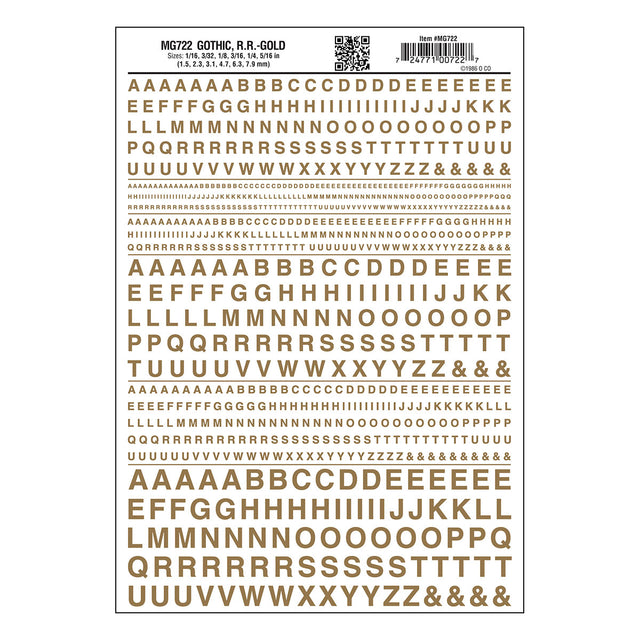 Woodland Scenics Dry Transfer Alphabet & Numbers - Railroad Gothic -- Gold - WOOMG722