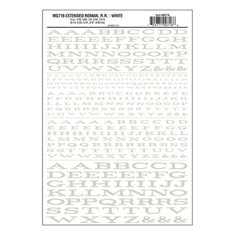 Woodland Scenics Dry Transfer Alphabet & Numbers - Extended Railroad Roman -- White - WOOMG716