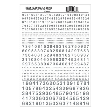 Woodland Scenics Dry Transfer Numbers Only - Railroad Gothic -- Silver - WOOMG731