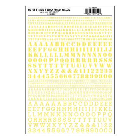 Woodland Scenics Dry Transfer Alphabet & Numbers - Stencil/Block Roman -- Yellow - WOOMG754