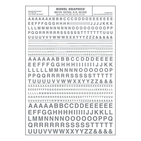Woodland Scenics Dry Transfer Alphabet & Numbers - Railroad Gothic -- Silver - WOOMG725