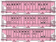 Accurail HO Pullman-Standard 4750 3-Bay Covered Hopper 3-Pack - Kit -- Co-Op 1 Each: Albert City, West Bend, Klemme, IA (pink, black) Pullman-Standard 4750 3-Bay Covered Hopper 3-Pack - Kit -- Co-Op 1 Each: Albert City, West Bend, Klemme, IA (pink, black)