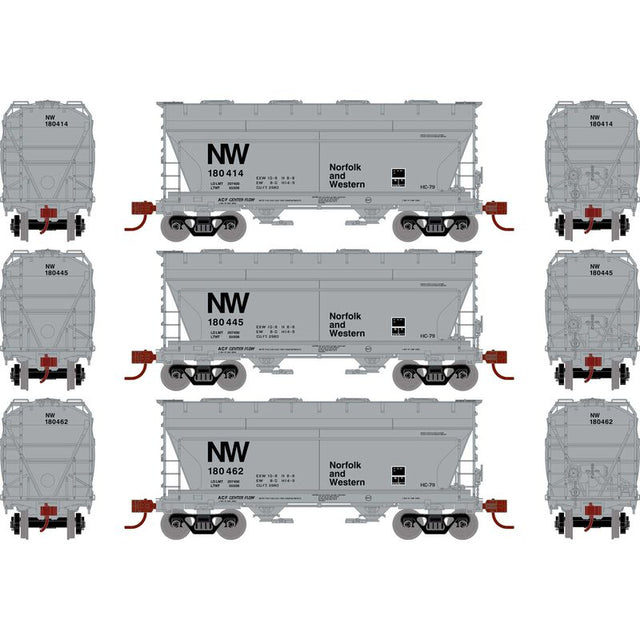 Athearn HO RTR ACF 2970 Covered Hopper, N&W (3) - ATH93462