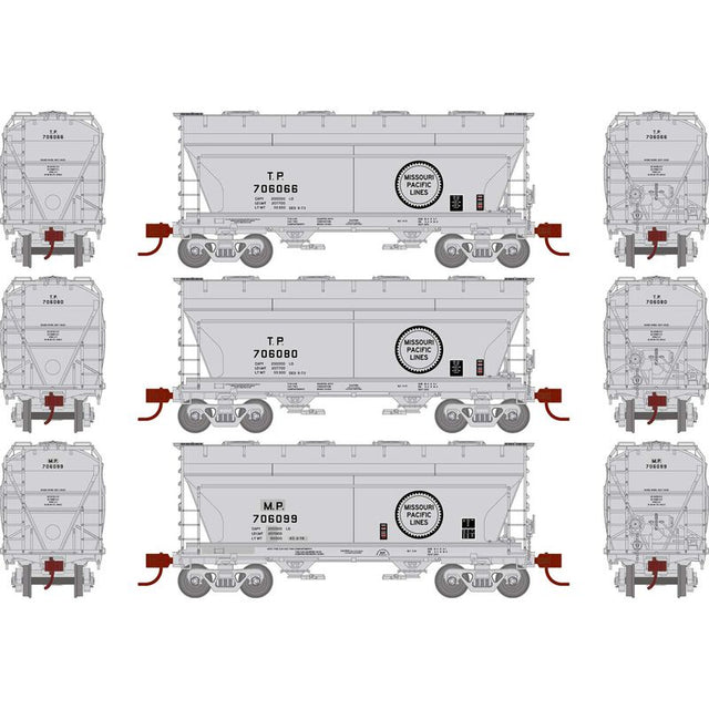 Athearn N ACF 2970 Covered Hopper, MP/TP (3) - ATH24673