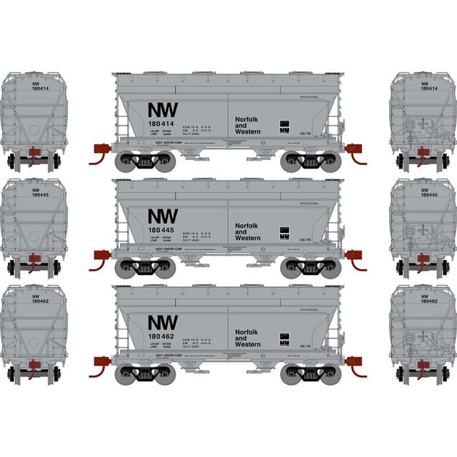 Athearn N ACF 2970 Covered Hopper, N&W (3) - ATH24676