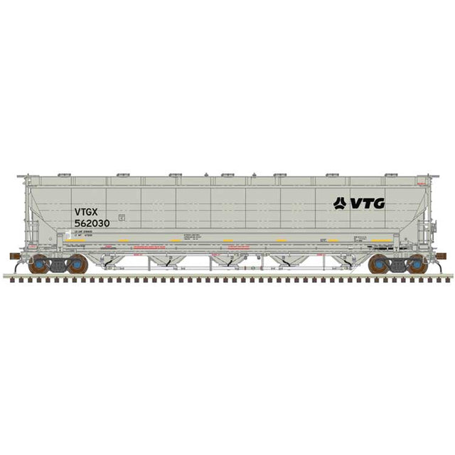 Atlas HO Trinity 5660 PD Covered Hopper - Ready to Run -- VTG North America VTGX #562042 (gray, black, yellow conspicuity stripes)