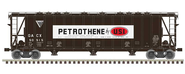 Atlas N General American 3500 Dry-Flo 3-Bay Covered Hopper - Ready to Run -- USI Petrothene GACX #50433 (black, white)