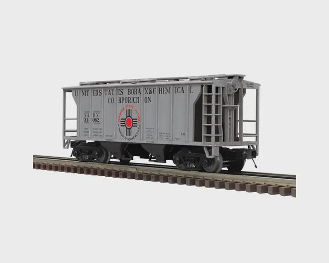 Atlas O PS-2 3-Bay Covered Hopper - 3-Rail - Ready to Run - Premier -- U.S. Borax (gray, black, red) #31065