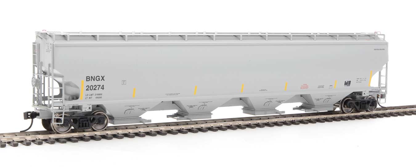 WalthersProto 67' Trinity 6351 4-Bay Covered Hopper - Ready to Run -- Bunge Corporation BNGX #20274 (gray, Yellow Conspicuity Stripes) - 920-105845