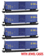 Micro-Trains N 50' Boxcar with 10' Door, No Roofwalk 4-Pack - Ready to Run Jewel Case -- CSX #143237, 143247, 143225, 143212 (blue, yellow)
