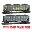 Micro-Trains 100-Ton 3-Bay Ribside Open Hopper w/Load 2-Pack Foam Nest - Ready to Run -- Squaw Creek Coak AEX #4420, 4421 (Weathered, black, Graffiti) - 489-99305034