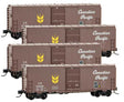 Micro-Trains 40' Single-Door Boxcar No Roofwalk, Short Ladders 4-Pack - Ready to Run -- Canadian Pacific 123649, 123656, 123663, 123670 (Boxcar Red, Script, Wheat) - 489-99300158