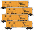 Micro-Trains 40' Steel Ice Reefer 4-Pack - Ready to Run -- Pacific Fruit Express 20043, 20047, 20051, 20056 (orange, silver, black Logo - 489-99300175