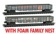 Micro-Trains 50' 15-Panel Fixed-End Fishbelly-Side Gondola 2-Pack Foam Nest - Ready to Run -- Illinois Central Gulf #245056, 245669 (Weathered, black, 1 w/orange letterin - 489-99305044
