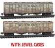 Micro-Trains 50' Airslide Covered Hopper 2 Pack w/Jewel Cases - Ready to Run -- Milwaukee Road #109945, 109885 (Weathered, gray, black, Billboard Lettering) - 489-98305024