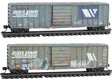Micro-Trains 50' Rib-Side Single-Door Boxcar No Roofwalk Jewel Cases - Ready to Run -- Montana Rail Link #21059, 21112 (Weathered, blue, white, Graffiti) - 489-98305032