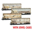 Micro-Trains ACF 3-Bay Center Flow Covered Hopper w/Elongated Hatches 4 Pack - Ready to Run -- CSX #247307, 247177, 247555, 247490 (Ex-FLS, Weathered, beige)