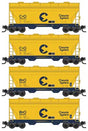 Micro-Trains ACF 39' 2-Bay Center-Flow Covered Hopper Round Hatches 4-Pack - Ready to Run -- Chessie System B&O #604752, 604789, 605055, 605095 (yellow, blue) Jewel Case - 489-98300213