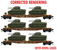 Micro-Train N 50' Fishbelly-Side Flatcar w/M4 Sherman Tank 4-Pack Jewel Case - Ready to Run -- Pennsylvania Railroad (Tuscan, Undecorated Tank Load Kit) - 489-98302217