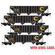Micro-Trains 100-Ton 3-Bay Ribside Open Hopper w/Coal Load 4-Pack - Ready to Run - Jewel Ca -- Chessie System WM #188820, B&O #187348, C&O #160103, 158941 (black, yellow) - 489-98300217