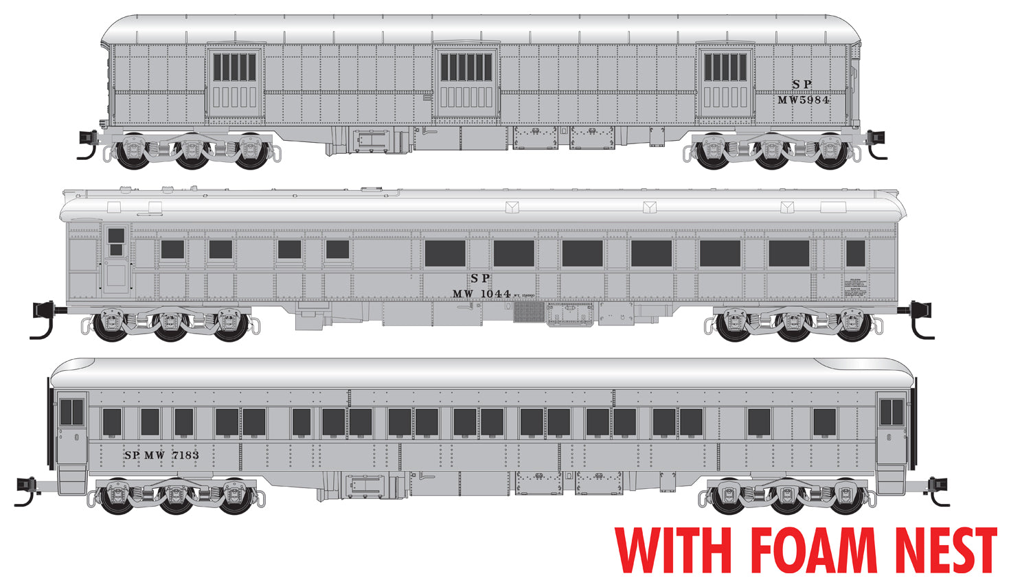 MOW Converted Sleeper, Diner, Horse/Baggage Cars - Ready to Run, Foam Nest -- Southern Pacific #5984, 1044, 7183 (light gray)