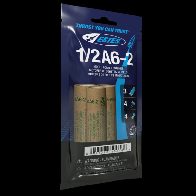 Perfect for educational use, backyard launches, and STEM programming, the 1/2A6‑2 is a trusted engine that consistently delivers repeatable results. Its combination of modest power, simplicity, and high reliability continues the Estes legacy of making model rocketry accessible and fun for all levels of rocketeers.