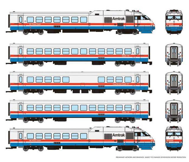 Rapido N-Scale Rohr RTL Turboliner 5-Unit Set - ESU LokSound and DCC -- Amtrak (Set #1, Phase III, Early; white, blue, red)