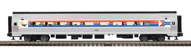 Atlas O Amfleet(R) Coach - 3-Rail - Ready to Run - Premier -- Amtrak (Fantasy Scheme, 50th Anniversary, Phase I, silver, red, black, blue #82060